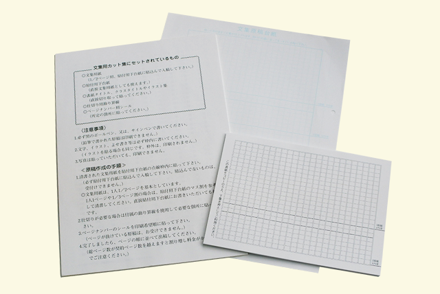 きれいな無地の白用紙に黒文字ではっきりとご記入いただき、入稿時に同封してお送りください。