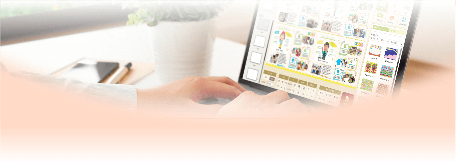 お客様にアルバム中面の原稿をご制作いただきます。