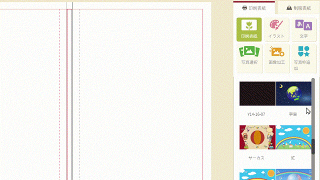 本のような豊かなデザインが揃う50種類以上のデザインテンプレートから、好きなものを選んで写真を配置すれば、オリジナル表紙の完成!